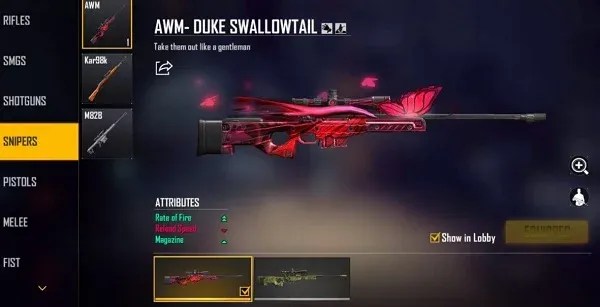 The duke swallowtail is an awm skin reminiscent of csgo. This is one of the latest weapon skin that is really important for you to find out. After the release of the players unknown battle ground game in 2017, . Free fire is a mobile battle royale game that is really . The following article is about the top five best awm skin available in free fire 2021.
